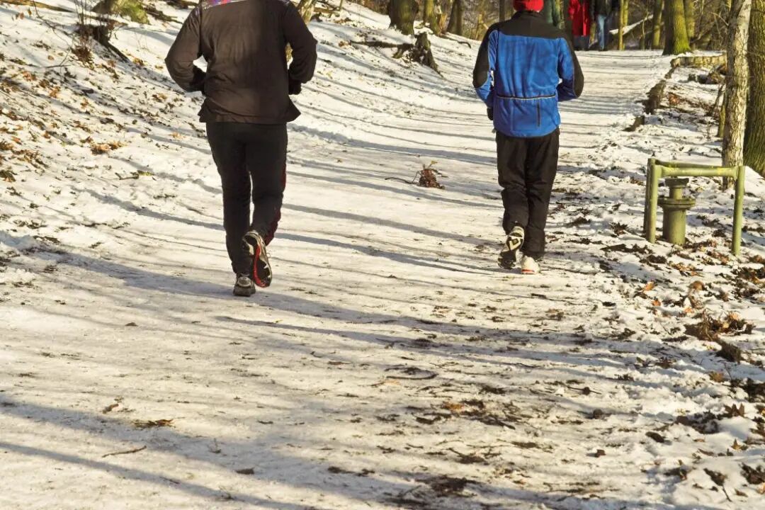 选对路线:户外跑步、徒步时,尽量避开有冰雪的路面,穿防滑鞋底的鞋子,防止打滑摔倒。