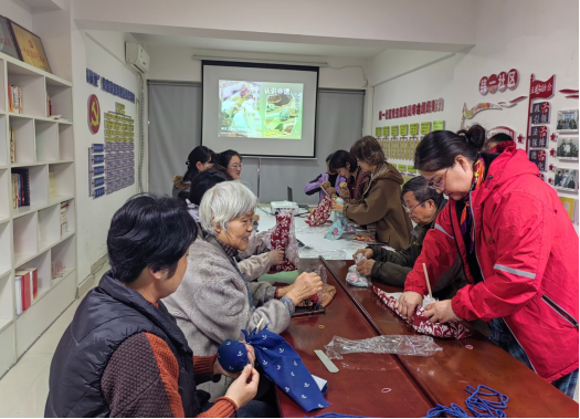 活动前期,社区工作人员精心筹备,采购了优质干燥艾草、柔软棉布、结实麻绳及安全手工工具,确保材料齐全、使用放心。活动中,志愿者详细讲解了艾草的民俗文化内涵、艾草锤的养生功效与制作步骤,从布料裁剪、艾草填充到麻绳捆扎,每个环节都耐心示范、细致指导。居民们热情参与,围坐一起分工协作:有的负责裁剪布料,有的专注填充艾草,有的协助捆绑固定。大家互相交流技巧,熟练的居民主动帮助新手,现场气氛温馨融洽。制作过程中,居民们一边动手,一边分享生活趣事和不同民族的传统习俗,艾草清香与欢声笑语交织,奏响了民族团结的温暖乐章。