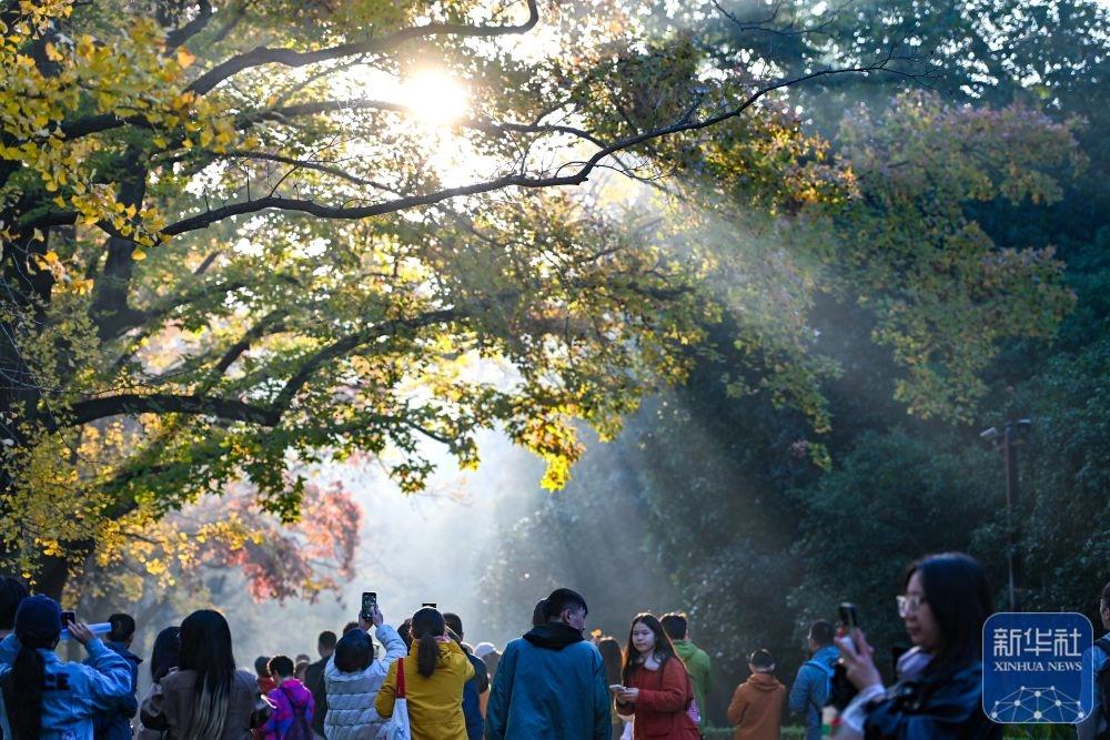 11月16日,游人在江苏南京明孝陵景区赏景游玩。新华社发(杨素平摄)