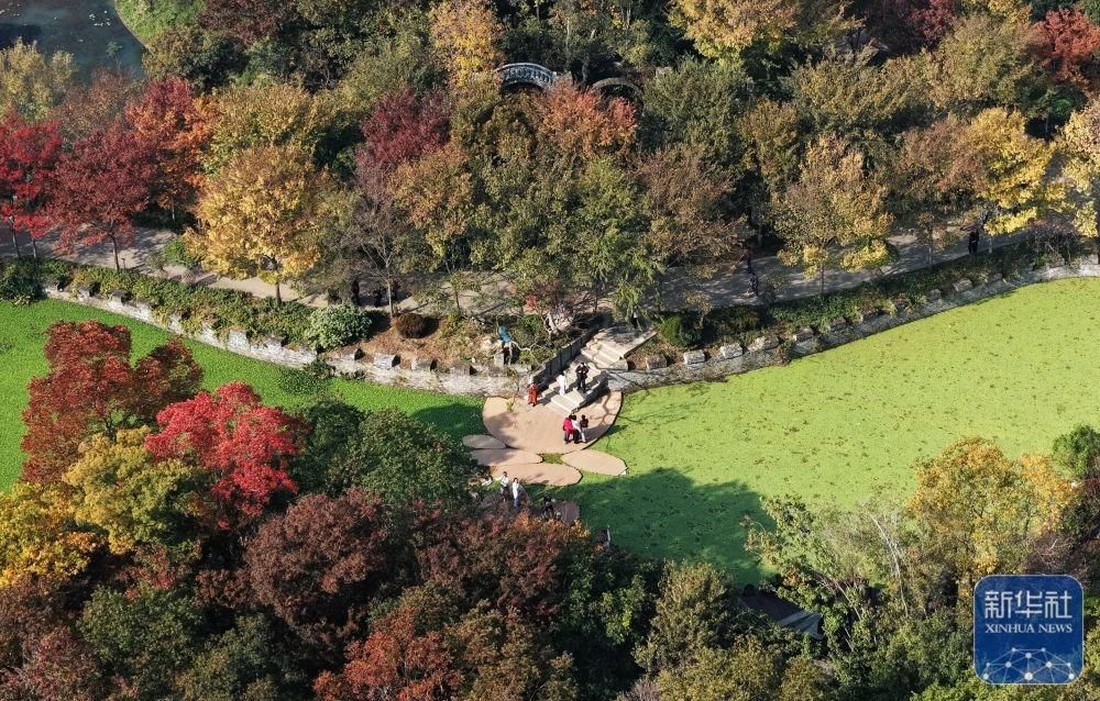 11月16日,游客在江苏省扬州市朴园景区游玩(无人机照片)。新华社发(孟德龙摄)初冬时节,神州大地美景如画。