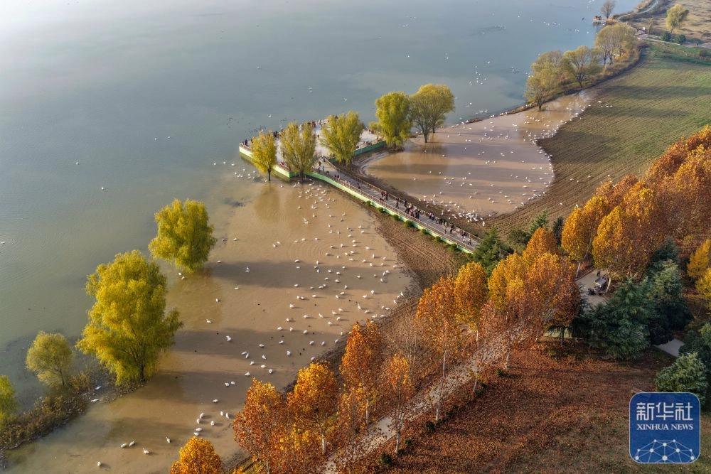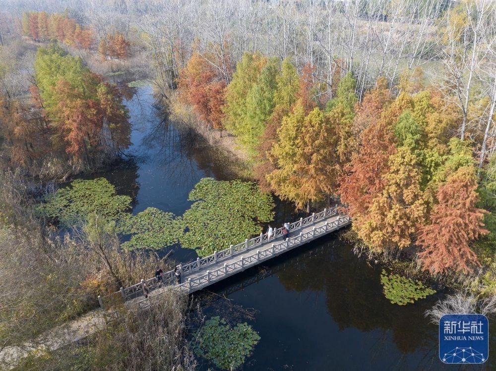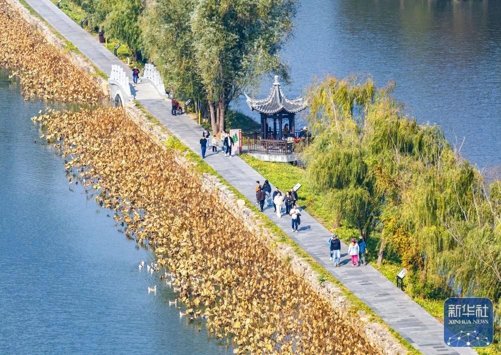 11月16日,游客在江苏省淮安市古淮河文化生态景区游玩(无人机照片)。新华社发(张建摄)