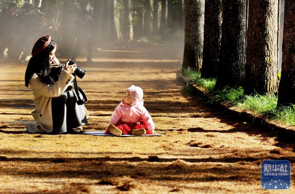 11月15日,游客在江西省德兴市大茅山风景区打卡拍照。新华社发(卓忠伟摄)