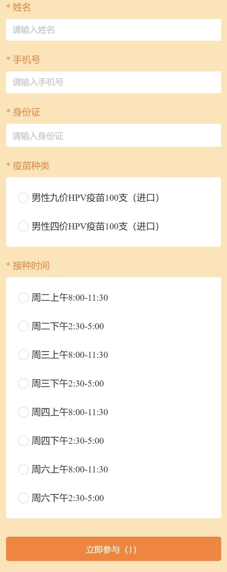 2、本批疫苗预约名额包括男性九价、四价HPV疫苗各100支。