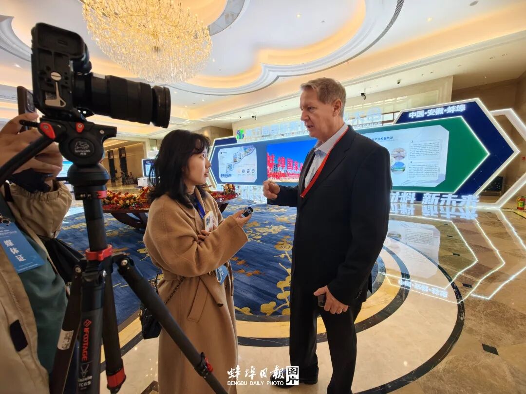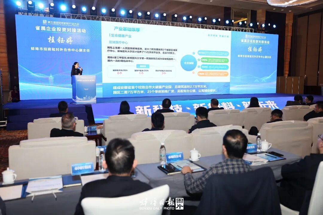来自各地的客商与蚌埠本地企业现场对接合作意向。