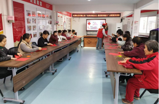 11月26日,红旗社区联合安徽财经大学青年志愿者协会共同举办“传承非遗文化 感受剪纸魅力”剪纸志愿服务活动,吸引众多党员群众积极参与。