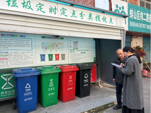 党建牵头强组织,筑牢分类“红色防线”。社区党组织主动扛起责任,牵头组建由党员干部、网格员、物业人员构成的“党员巡查队”,对辖区垃圾分类亭开展“全覆盖”专项巡查,重点核查投放时间、垃圾桶配置、分类标识及环境卫生等关键环节,建立台账、现场督促整改。针对居民反映的投放不便、指引不明等问题,党员干部带头协调解决,确保分类亭“有人管、管到位”。在投放高峰时段,党员志愿者化身“分类指导员”,手把手指导居民区分四类垃圾、纠正不规范行为,带动居民养成良好分类习惯。