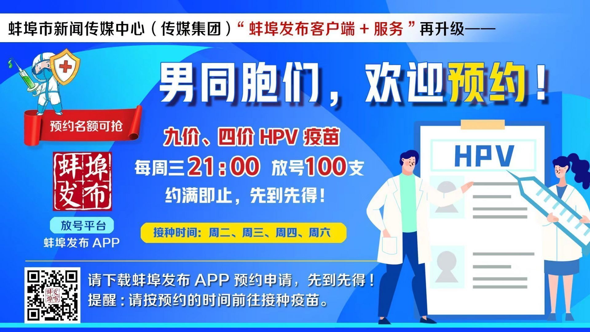 请下载蚌埠发布APP预约申请,先到先得!