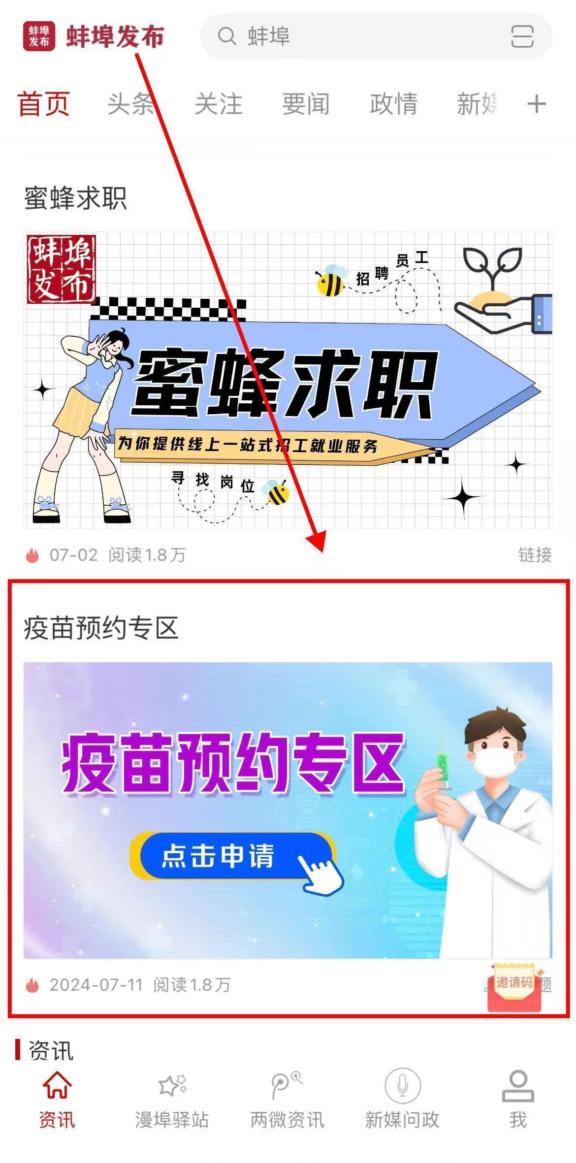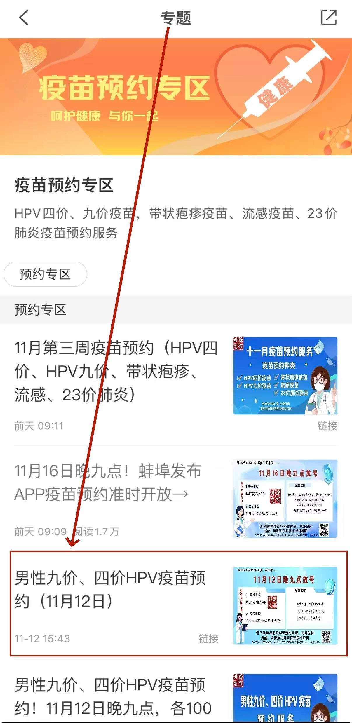 点击进入“疫苗预约专区”