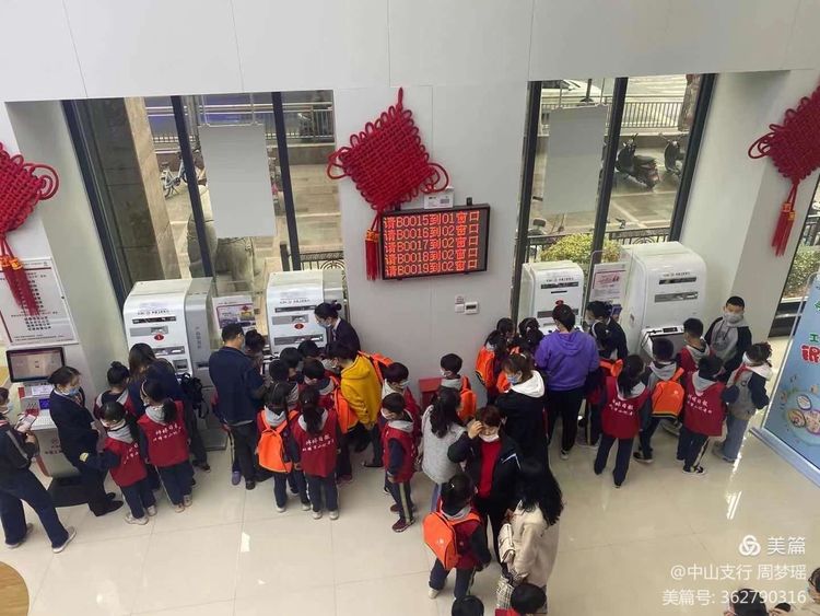 下午2点半活动开始,小记者们在老师的引导下有序进入银行大厅,等待开启本次活动的第一个环节。第一个环节是"认识银行设备",银行工作人员对大厅常见的自助终端机做了简单的介绍,并形象解释了基本功能。小记者们积极互动,对新知识充满期待。