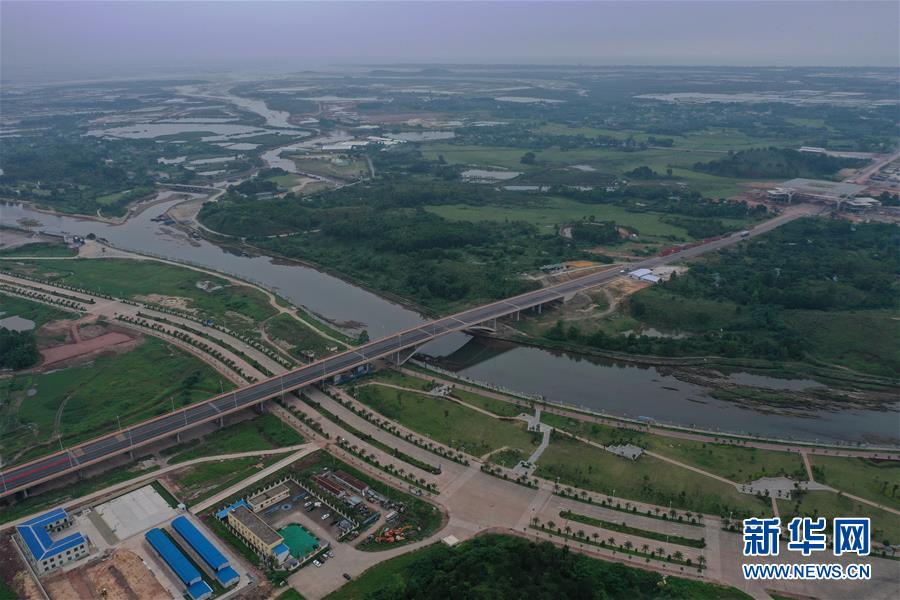 这是位于中越边境的北仑河二桥(4月15日无人机拍摄)。新华社记者 曹祎铭 摄