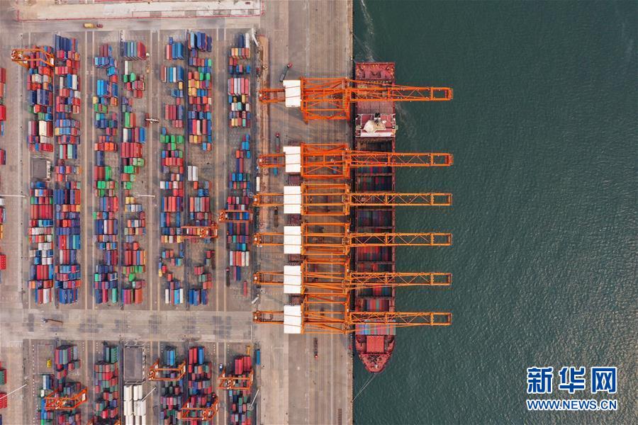 这是广西钦州保税港区集装箱码头(4月11日无人机拍摄)。新华社记者 曹祎铭 摄