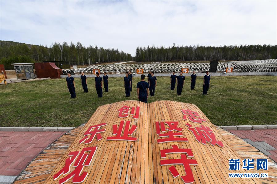入夏的大兴安岭,松青桦洁,杜鹃欲燃。行近中队,远远便能看到营地后山上用白桦树树干拼接的“忠诚”二字,红色油漆的涂饰,在蓝天翠松的映照下,愈发显眼。