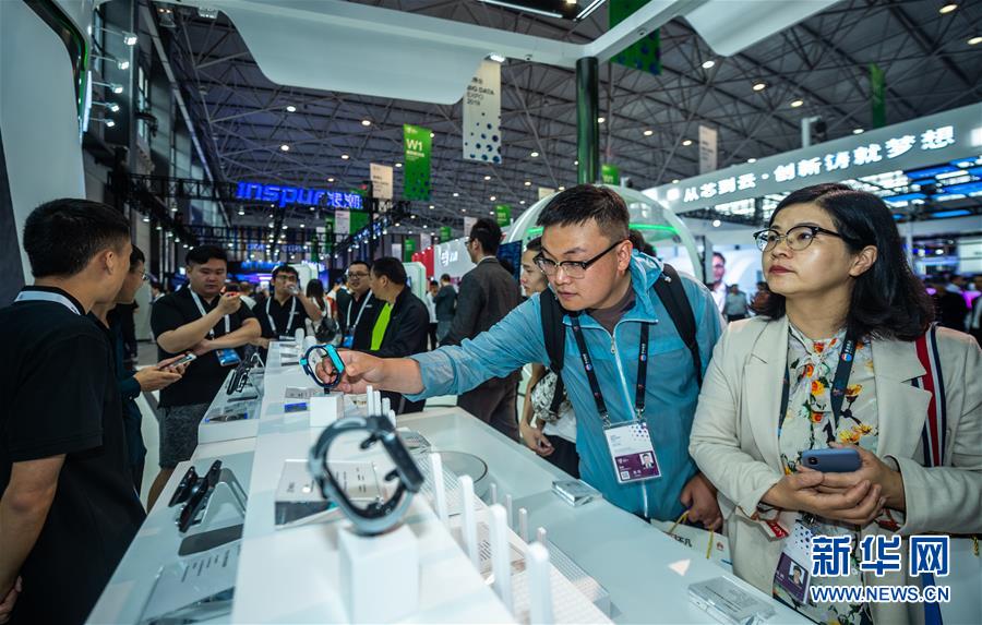 参观者在2019中国国际大数据产业博览会上观看智能手表(2019年5月26日摄)。新华社记者 陶亮 摄