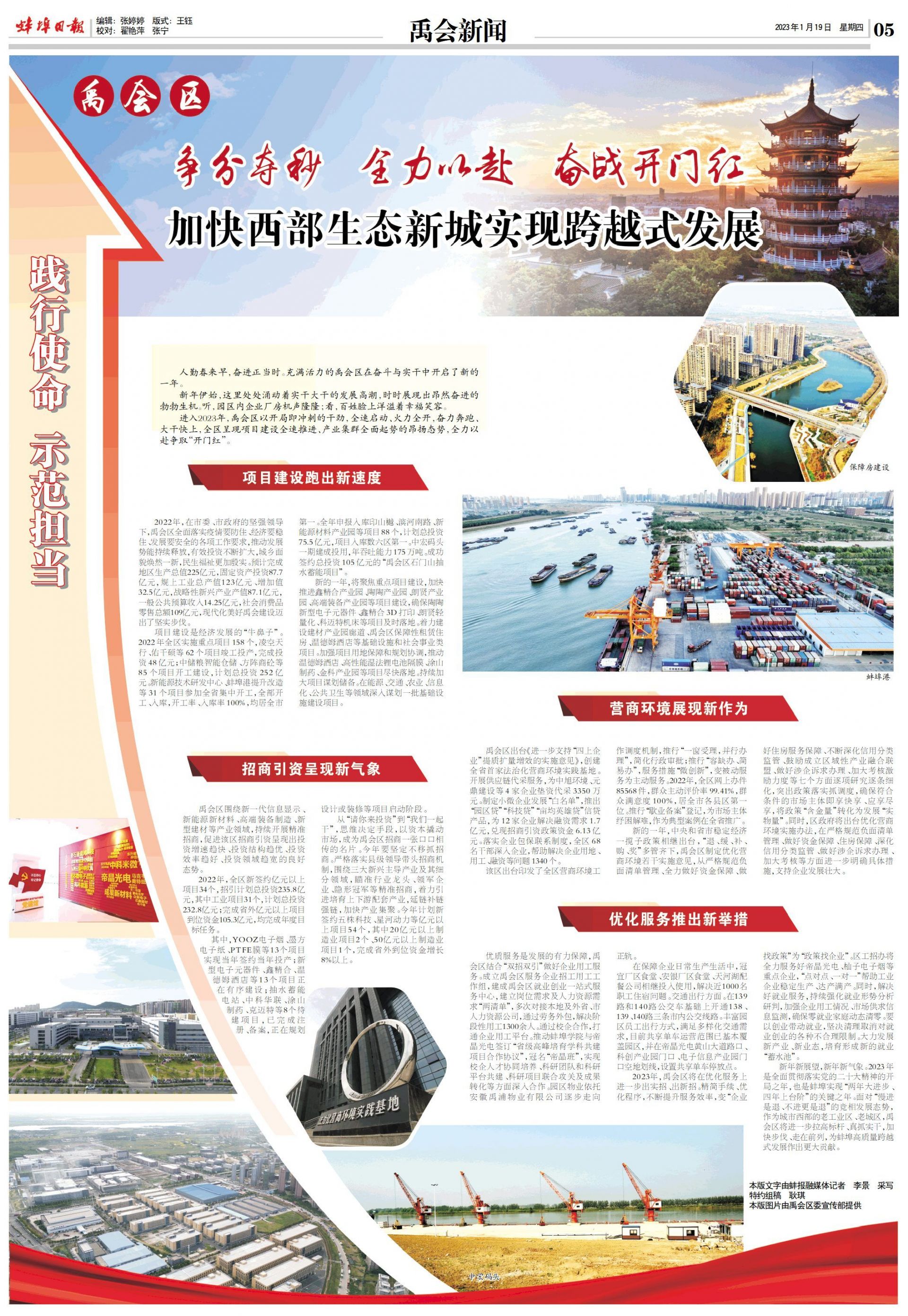 新年新展望,新年新气象。2023年是全面贯彻落实党的二十大精神的开局之年,也是蚌埠实现“两年大进步、四年上台阶”的关键之年。面对“慢进是退、不进更是退”的竞相发展态势,作为城市西部的老工业区、老城区,禹会区将进一步拉高标杆、真抓实干,加快步伐、走在前列,为蚌埠高质量跨越式发展作出更大贡献。
