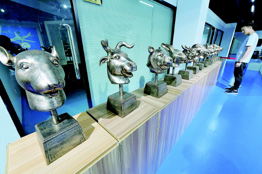 9月11日,安徽魔猴三维科技有限责任公司展厅,用3D打印技术制作的十二生肖兽首铜像在此展出。                 记者 刘晨 摄