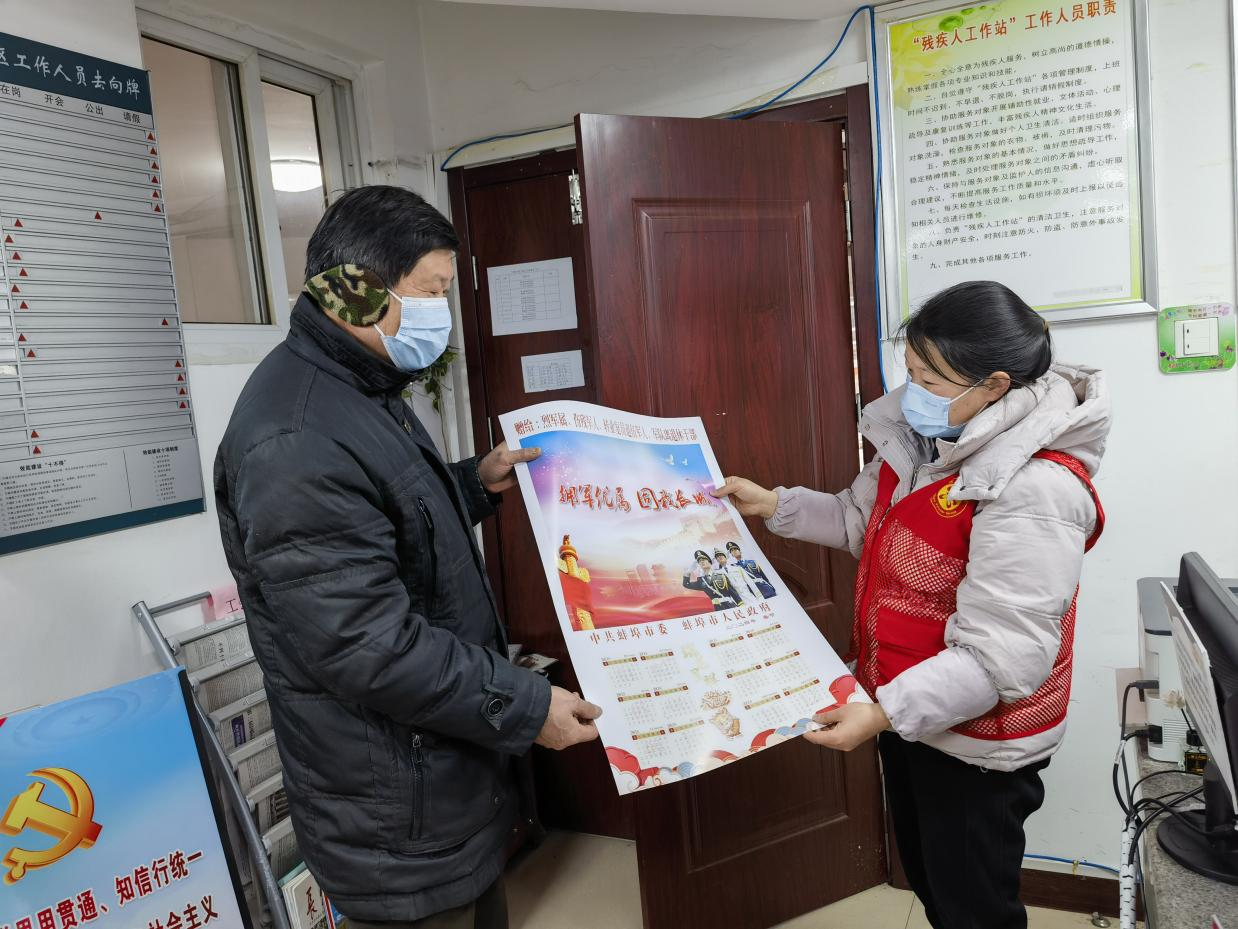 为弘扬拥军优属的光荣传统,近日, 沁雅社区为辖区退役军人发放年画,社区工作人员将年画送到优抚对象手中,同时了解他们的生活状况和身体情况等,感谢退役军人对国防事业的支持,并向他们致以节日的问候和美好的祝福。(金莹)
