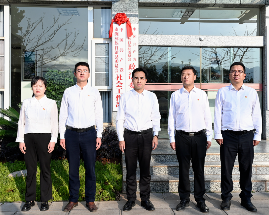 3月28日上午,中共南涧县委书记王绍基,县委常委、县委政法委书记李建宏参加中共南涧县委社会工作部揭牌仪式。