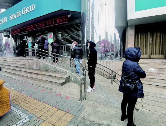 27日上午,排队交电费的市民保持1米以上的距离。