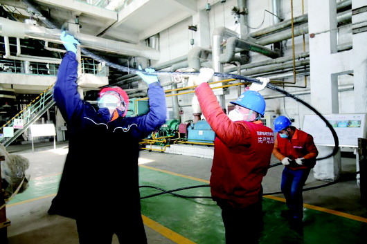 日前,国网蚌埠供电公司工作人员在架设中粮生化生物科技公司双回路接入工程。 记者 刘晨 通讯员 牛路 摄本报讯(记者 何沛)用电量是工业发展的“晴雨表”,用电量变化是观察一个地方经济运行状况的“风向标”。3月22日,在国网蚌埠供电公司调控中心,监控大屏幕上显示:当日规上工业企业用电量748万千瓦时。通过用电监测分析,比去年同期增加1.08%,较今年2月13日用电最低谷增长45.84个百分点,蚌埠电网的最大负荷日用电量逐步恢复甚至超过去年同期水平。
