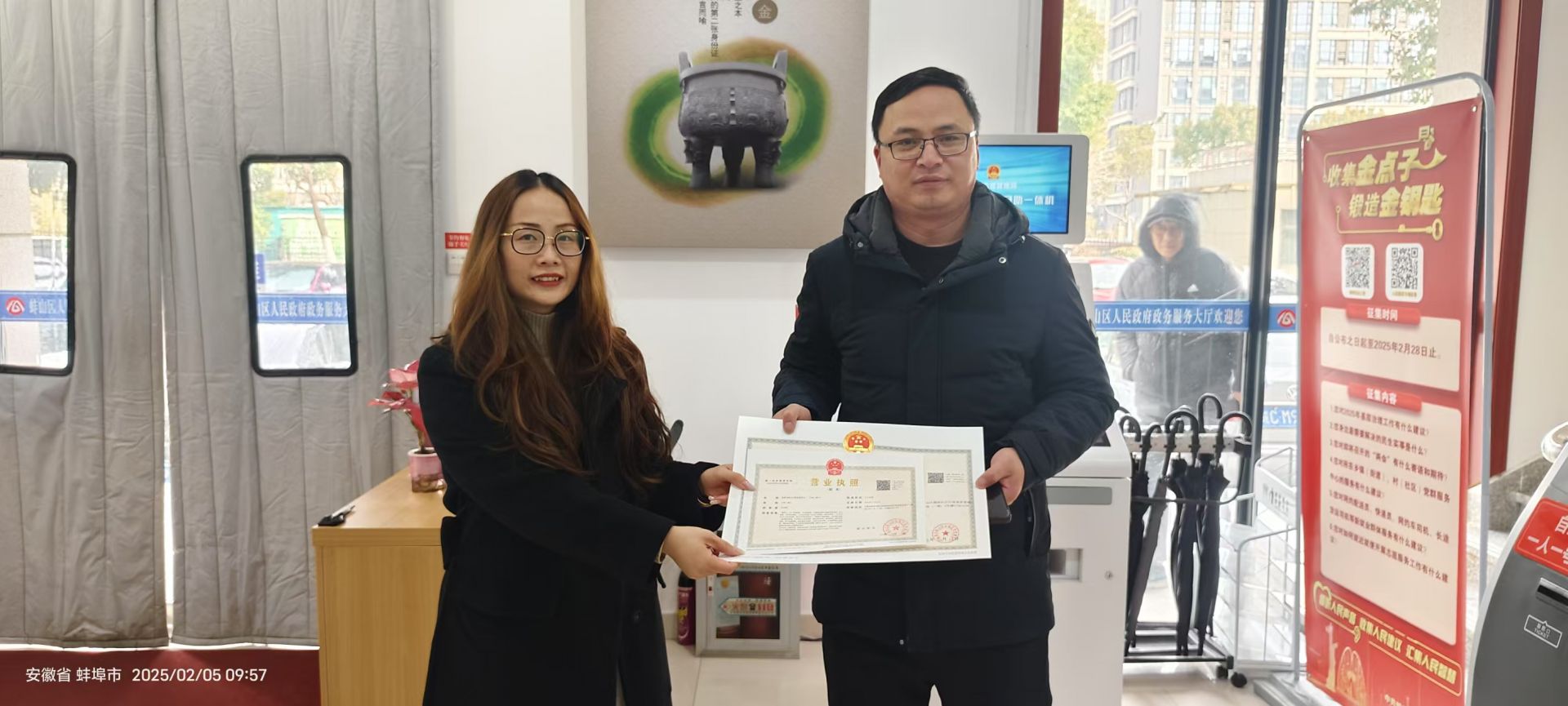 蚌埠发布客户端讯(融媒体记者 何沛 通讯员 徐小焕 文/图)“真没想到,节后第一天来办理业务,这办事效率杠杠的!”市民宋先生拿到营业执照后高兴地说道。2月5日,春节长假后上班第一天,蚌山区市场监管局窗口现场的工作人员早已从“假期状态”转入“工作状态”,以崭新的精气神全身心投入到工作中,为全年登记许可工作开好头、起好步。