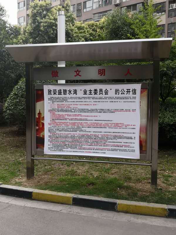 荣盛碧水湾小区里多处贴出醒目的公开信。