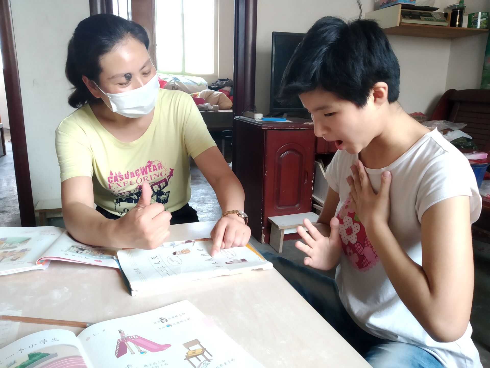 陈夕娥老师为不能来上学的孩子“送教上门”。