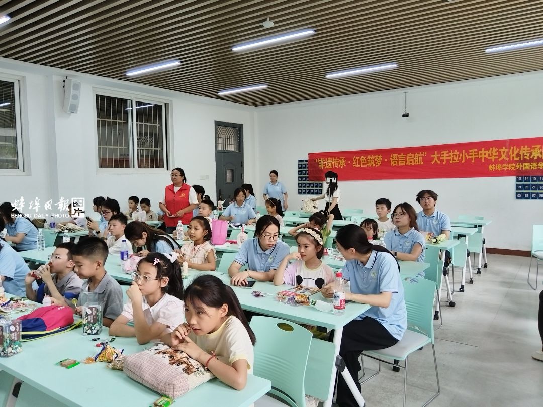 这个暑假,蚌埠学院外国语学院与龙湖春天社区联合开展了“活态传承·青春接力”非遗文化体验活动。大学生与小学生结成“非遗传承伙伴”,共同探索中华优秀传统文化的当代生命力。