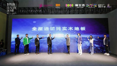 发布会核心环节,柏尔定制地板董事长朱国良先生携手设计大师覃思老师、柏尔定制地板副总经理朱国强先生等多位重磅嘉宾共同上台,将手缓缓置于启动装置之上。重磅宣告:“柏尔定制地板全屋通铺纯实木地板系列正式发布!”简洁有力的话语,标志着纯实木地板行业即将迈入全新发展阶段。