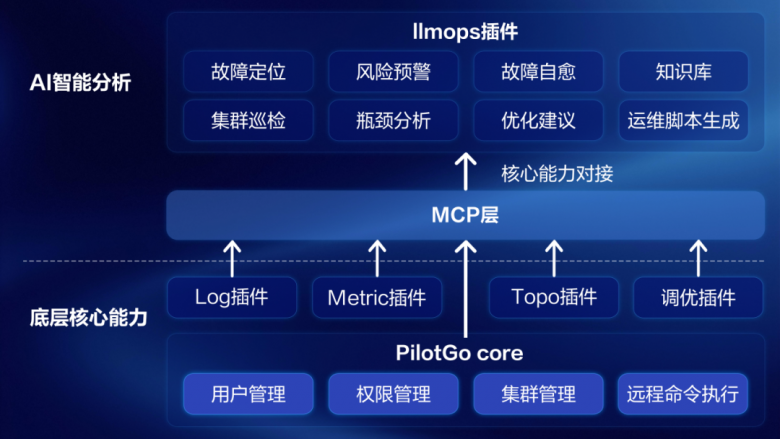 • AI智能运维方面,麒麟软件基于PilotGo插件式智能运维平台,孵化了PilotGo LLMOps插件,综合已有的业务日志、指标、拓扑、事件等全栈可观测数据,引入知识库、AI智能故障分析定位、智能运维脚本生成、解决方案推荐等AI能力,构建覆盖状态感知、故障预测、自愈修复与专家经验沉淀的AI驱动运维体系,显著降低人工干预频次,提升系统可用性与可靠性。