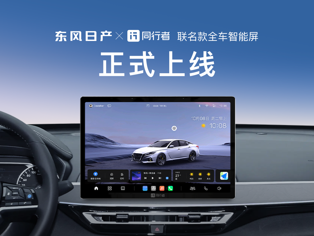 近期,东风日产联合同行者科技推出了一款“东风日产X同行者联名全车智能屏”的魅力产品。9月份,在东风日产APP商城开展油车智能化“油电同智,焕然 E 芯;车机换代,智趣同行!”的车机换代升级活动。