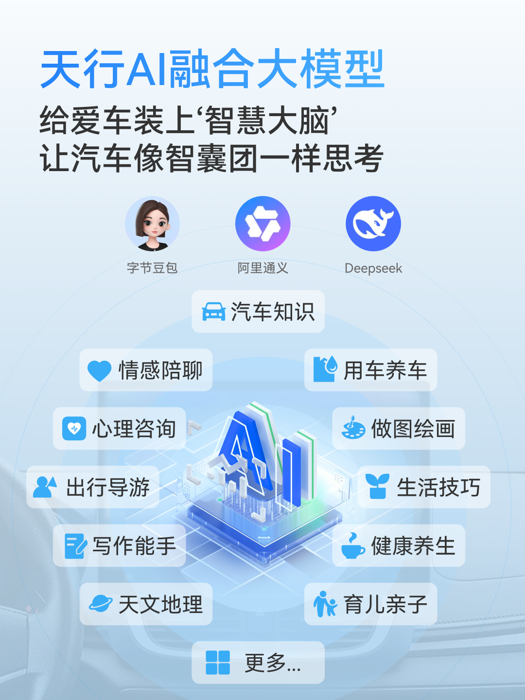 车机搭载前沿的AI大模型(包括deepseek、豆包等),赋予车辆强大的自然语言理解、知识储备与场景化服务能力。只需通过“你好,小T”+指令词唤醒,AI大模型即可精准理解车主需求,提供智能、贴心的服务,让您的爱车成为行车途中的“智能管家”。