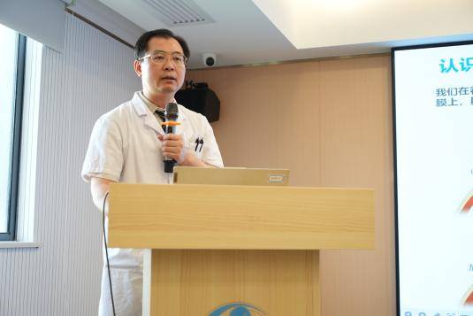 讲座初始,广西非公医疗机构协会眼科专委会委员、南宁华厦视光眼科医院副院长赵华平为大家进行老视和白内障内容科普,凭借其深厚的医学造诣和丰富的临床经验,详细剖析老视和白内障这些常见眼部问题。从病因到治疗,从预防到康复,为大家拨开迷雾,提供科学、实用的指导。赵华平院长进行了全面且深入浅出的讲解,让复杂的医学知识变得通俗易懂:“老视是年龄增长导致晶状体弹性下降,看近模糊;白内障则是晶状体混浊,视力逐渐下降。预防方面,减少长时间近距离用眼、避免强光直射、定期检查是关键。早发现、早干预,眼健康才能更安心。”