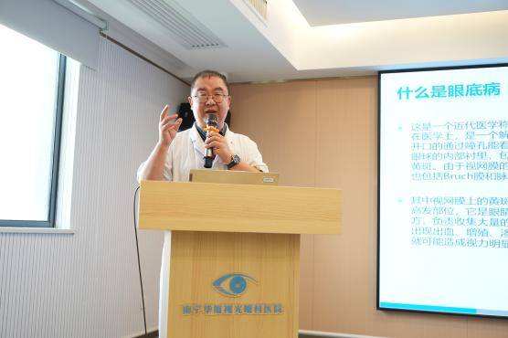 紧接着,全国非公医疗眼科影像学组委员、南宁华厦视光眼科医院眼底病专家宋昊刚博士为大家进行疑难眼病科普,他对眼底病等疑难病症有着丰富的临床经验和深入的研究,通过生动的案例分析、直观的影像展示,向大家揭示疑难眼病的奥秘,帮助大众认识这些疾病对视力的潜在威胁,以及如何做到早期发现和干预。“这类疾病往往隐匿发生,像糖尿病视网膜病变、黄斑变性等,早期可能只是视物模糊、眼前黑影,却可能悄悄偷走视力。”宋昊刚博士表示:“需要提高警惕:糖尿病患者每半年查一次眼底,40岁以上人群定期做眼底筛查,一旦发现视物变形、暗影遮挡等症状及时就医,多数眼底病都能通过早期激光、药物甚至手术干预,保住宝贵视力。记住:眼底健康无小事,早查早治是关键!”
