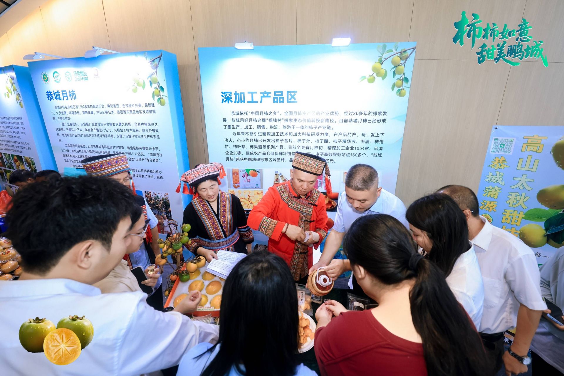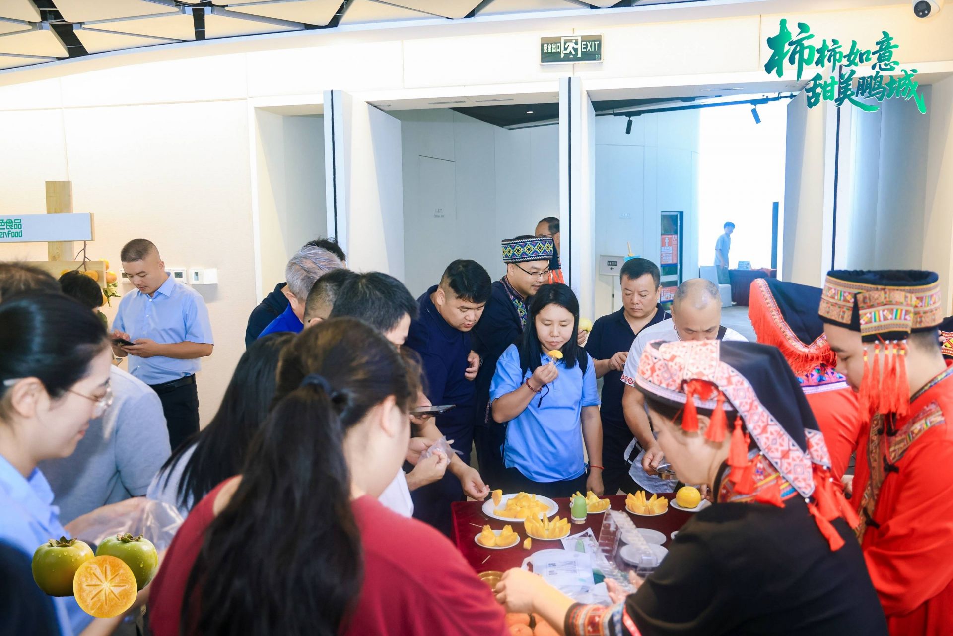 推介会现场,恭城企业、合作社带来的恭城甜柿、冰柿、柿子含片、柿子茶、柿子酒等一系列恭城月柿特色产品集中亮相,品鉴区成为 “人气焦点”。参会嘉宾通过试吃、咨询,近距离感受恭城甜柿、恭城月柿的品质优势,进一步夯实了合作信心。
