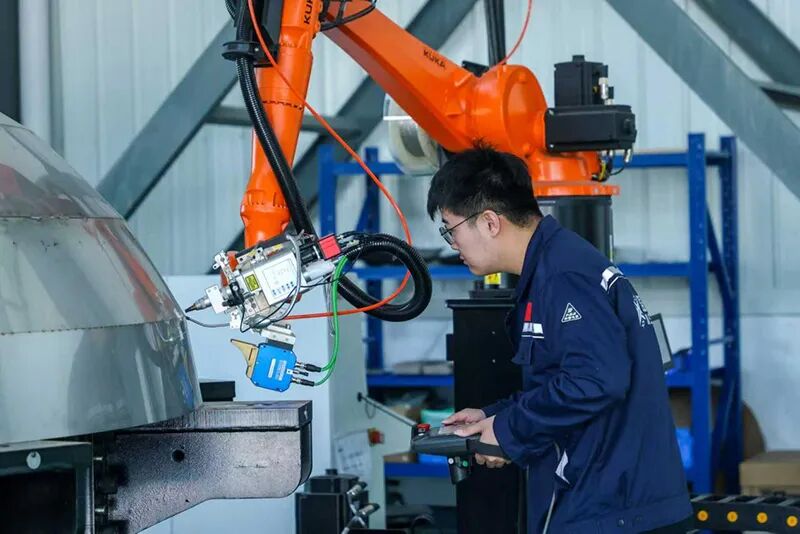 深蓝航空工作车间里,工作人员操作机械臂焊接设备。人民网记者 陶涛 摄