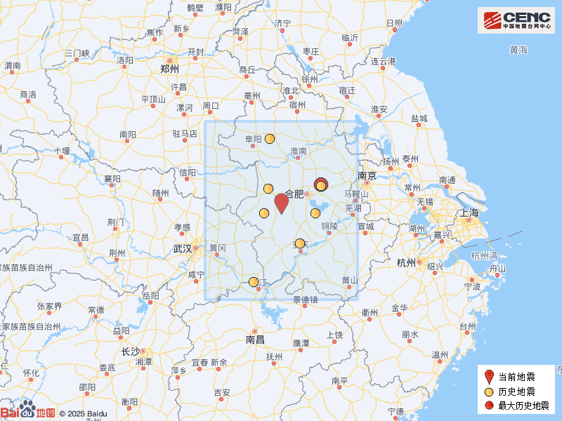 历史地震:根据中国地震台网速报目录,震中周边200公里内近5年来发生3级以上地震共15次,最大地震是2024年9月18日在安徽合肥市肥东县发生的4.7级地震(距离本次震中114公里),历史地震分布如图。