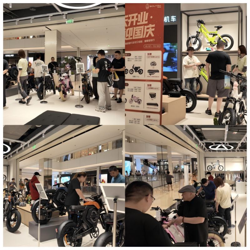 国庆黄金周,南京雨花万象天地内人潮涌动——AI智能潮玩电助力自行车先锋品牌BOLYGA柏利迦“骑行生态体验店”正式揭幕。这个斩获三项国际设计金奖的品牌为潮流客们呈现了一个极具科技感与开放式体验的空间,将人带入未来骑行场景。店内,造型酷炫的电助力自行车成为焦点,不少顾客咨询交流、跨车试骑。开业期间,时尚青年、户外爱好者、潮玩先锋穿行于开放式空间,触摸产品、打卡体验,门店迅速刷屏本地潮流社群,为黄金周的城市骑行热潮再添一把火。