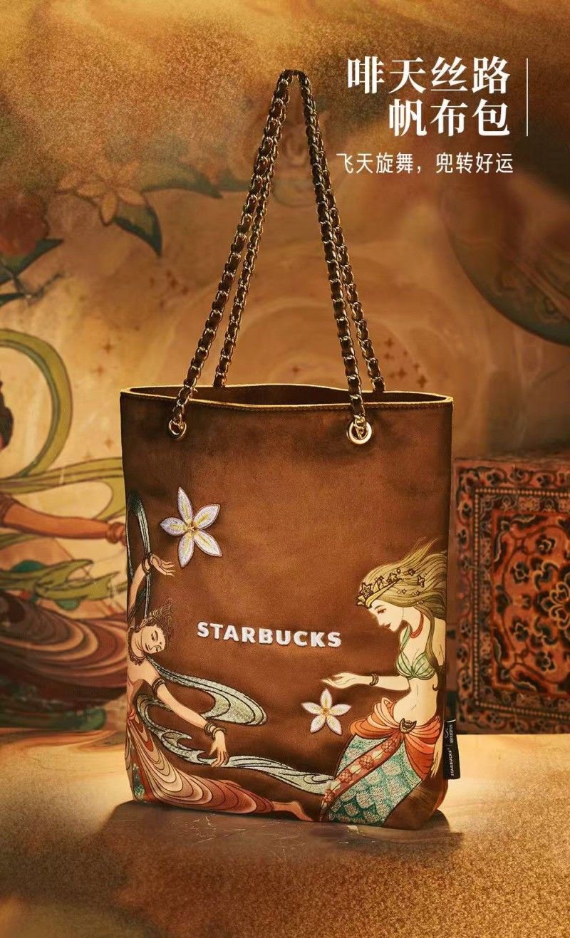 “星巴克×敦煌美术研究所”联名系列产品涵盖了马克杯、保温杯、限定刺绣托特包、限定会员星礼包以及啡天丝路锦绳等多种品类。产品一经推出,便凭借其独特的设计理念和深厚的文化内涵,迅速在社交媒体上引发热议,成为众多消费者追捧的对象。