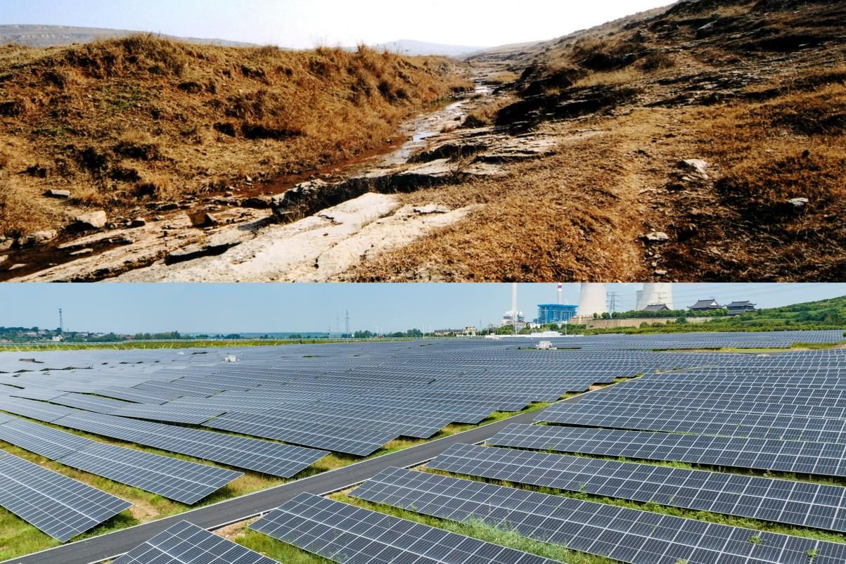 图为国能蚌埠电厂猫家洼原貌和现光伏对比图