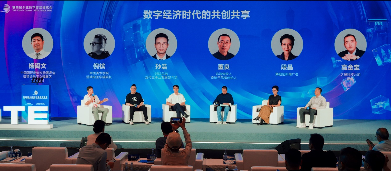 第二场圆桌对话是中华动画文化促进会副会长杨闳文先生主持的《数字经济时代的共创共享》,参与对话的嘉宾中国美术学院游戏动画学院院长倪镔先生、蚂蚁支付宝孙浩先生、非遗传承人董良先生、舞蹈创新推广者段晶女士和鲲之翼科技公司副总高金宝先生。从不同侧面映射文创领域的生存和发展状态。