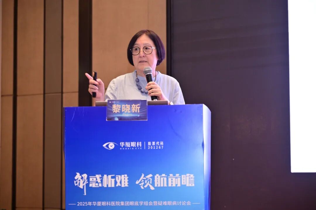 华厦眼科医院集团眼底学组主任委员、厦门大学附属厦门眼科中心总院长黎晓新教授为大会致开幕辞。黎院长代表学组欢迎各位专家相聚厦门。她表示,本次会议在延续学术交流传统的基础上,更加注重临床实战与技术下沉,以疑难病例为抓手,聚焦诊疗过程中的难点与对策,推动经验互通、技术共进。她强调,华厦眼科有丰厚的专家资源和扎实的青年医师梯队,学组要持续搭建“传帮带”机制,助力青年医师成长,为集团学科乃至眼底行业注入持续动能。