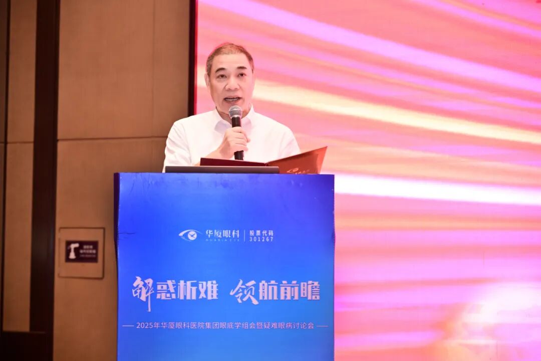集团领导陈凤国在致辞中表示,眼底学科是集团“技术立院”的重要支撑。多年来,在黎晓新总院长的引领下,学科建设、科研教学、诊疗技术等方面都取得了扎实进步,不仅建成了一支经验丰富、梯队合理的人才队伍,更通过持续开展疑难病例研讨等特色项目,将实战经验转化为普遍提升的诊疗水平,为学科长远发展奠定了坚实基础。最后,他呼吁全体眼底医生要勇于突破技术边界,积极参与学组共建,共同打造具有华厦特色的眼底诊疗体系。