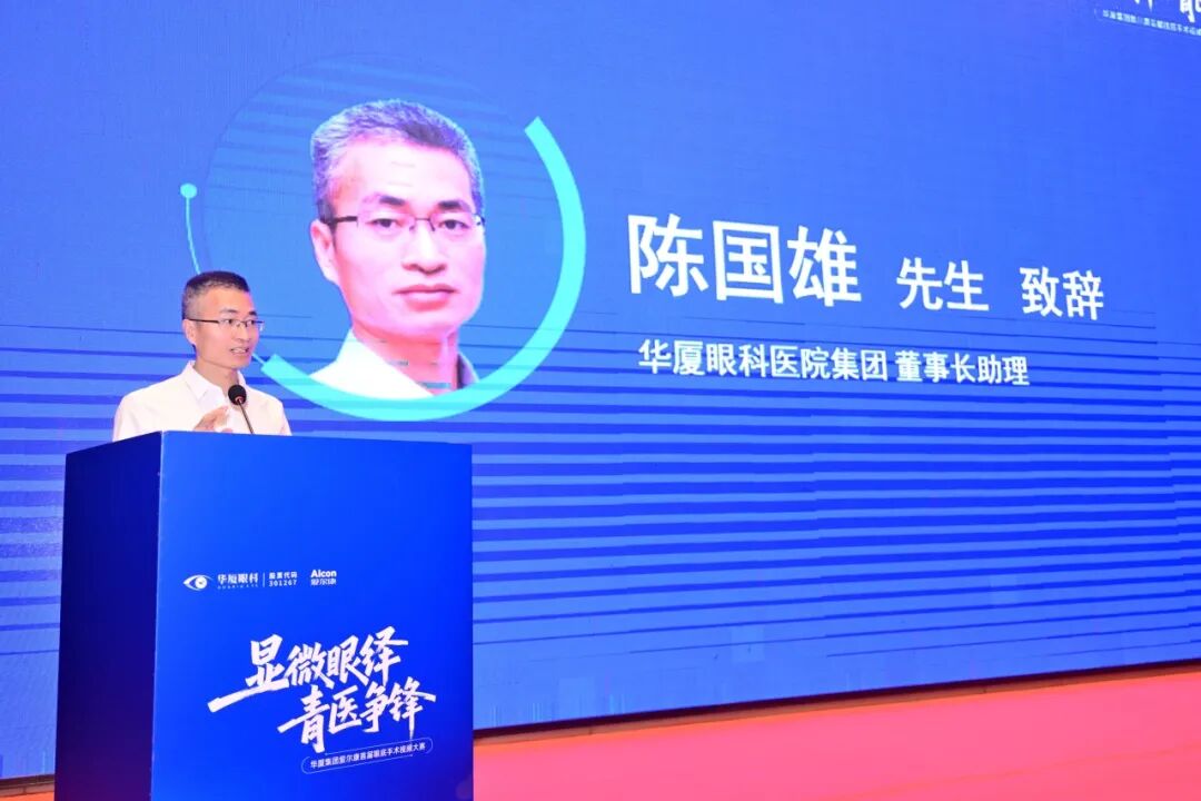 集团董事长助理陈国雄先生在致辞中表示,举办此次眼底手术大赛,旨在将手术中的精湛技艺、临场决断与创新思考,转化为可被学习、可被探讨的宝贵资源,不仅是推动眼底手术迈向标准化、规范化、同质化的关键一步,更是为了激发青年医师的成长潜能,凝聚华厦眼科眼底团队的智慧与力量。