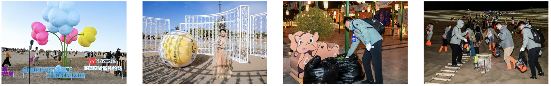 与此同时,九牧在活动现场打造的沉浸式互动体验同样令人难忘:现场设置的“月满敦煌 风生水起”艺术打卡点,巨型月亮与心愿墙吸引不少观众纷纷驻足留念;内含定制荧光棒、防沙鞋套与敦煌酥饼的“爱心装备包”让关怀触手可及;“多巴胺能量补给站”K歌空间与便捷设施则全方位提升了观演体验。而在活动尾声,九牧发起的“带走垃圾 留下爱心”公益行动,更与观众携手守护沙漠环境,让“科技赋能美好生活”的品牌理念得到了更加具象化的展现。