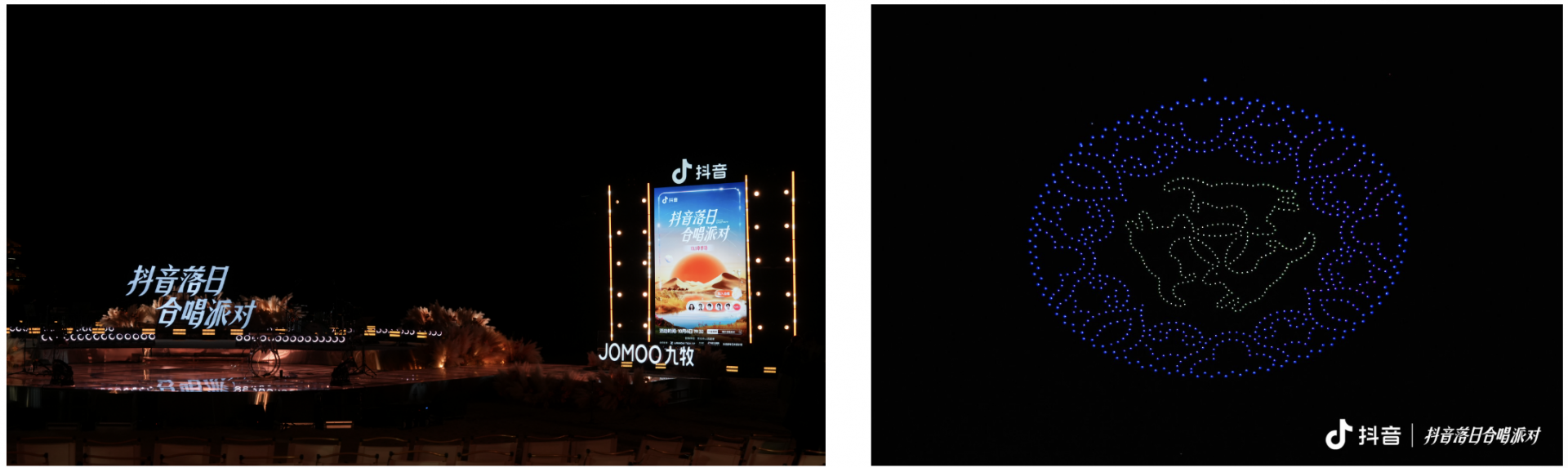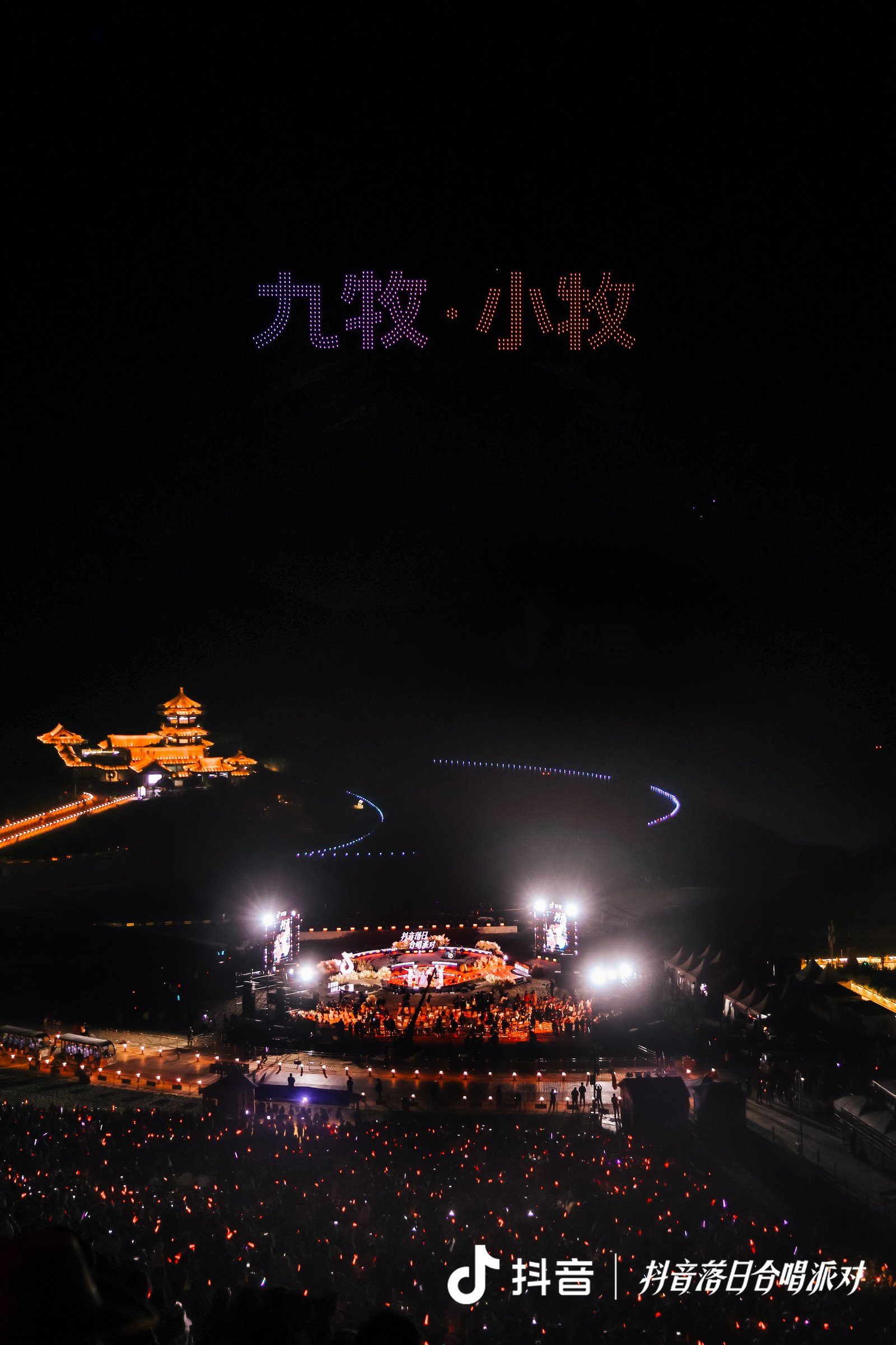 作为本场「抖音落日合唱派对」的冠名方,九牧的全程暖心陪伴,也将品牌温度精准传递给了更多到场观众。夜幕降临,上千架无人机在敦煌夜空缓缓升起,独属于中秋浪漫在此刻具象化了。无人机精美的画面与月牙泉遥相呼应,照亮全场的热情,给每一位观众带来极致浪漫的美好体验。它们与澄澈如镜的月牙泉遥相呼应,光影流转间,瞬间激发全场热情,也将每一位观众带入独属于敦煌的浪漫意境中。