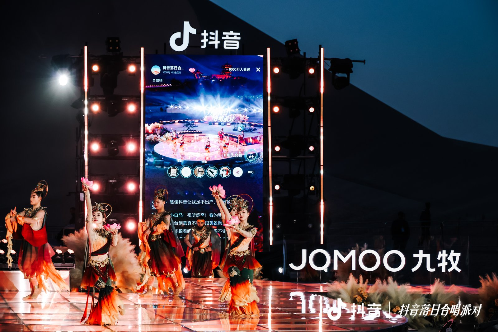 「抖音落日合唱派对」在敦煌古乐舞《千年莫高·乐动敦煌》的悠扬韵律中拉开帷幕。