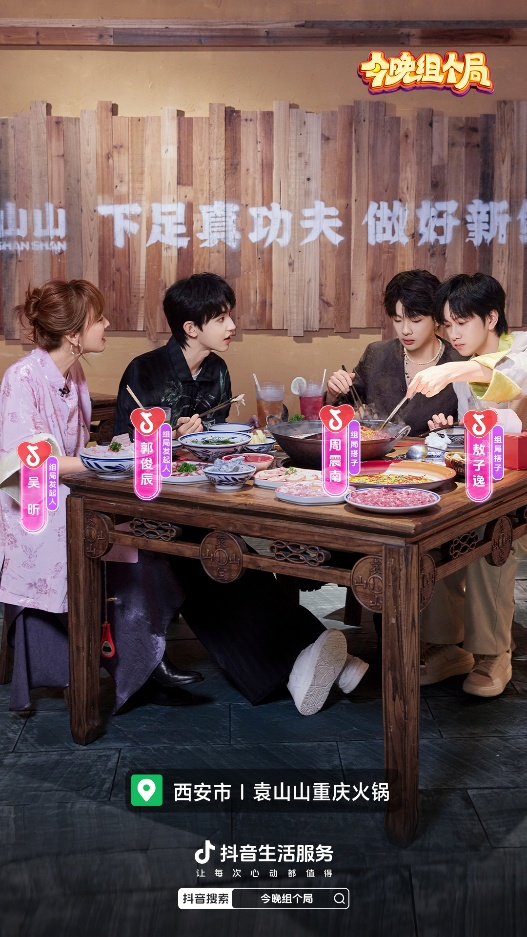 由抖音生活服务出品的全国首档夜间潮流生活体验小鲜综——《今晚组个局》于10月16日正式开播。节目由吴昕、郭俊辰两位组局发起人领衔,每期携手两位组局搭子,深入一座城市,在不眠之夜中,开启一场关于“夜经济 + 情绪解压”的沉浸式体验。