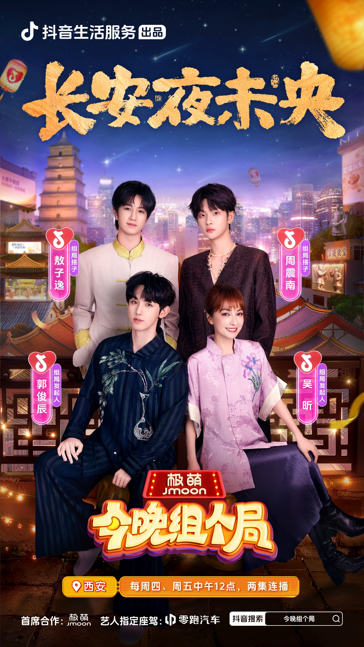 夜色已至,局已就绪—— 10月16日起,每周四、周五锁定抖音, 和吴昕、郭俊辰携手飞行嘉宾周震南、敖子逸、张歆艺、孔雪儿、SHarK米尔艾力、斯外戈、代露娃、何洛洛夜游西安、北京、重庆、上饶,一起品味夜城,组局人生。