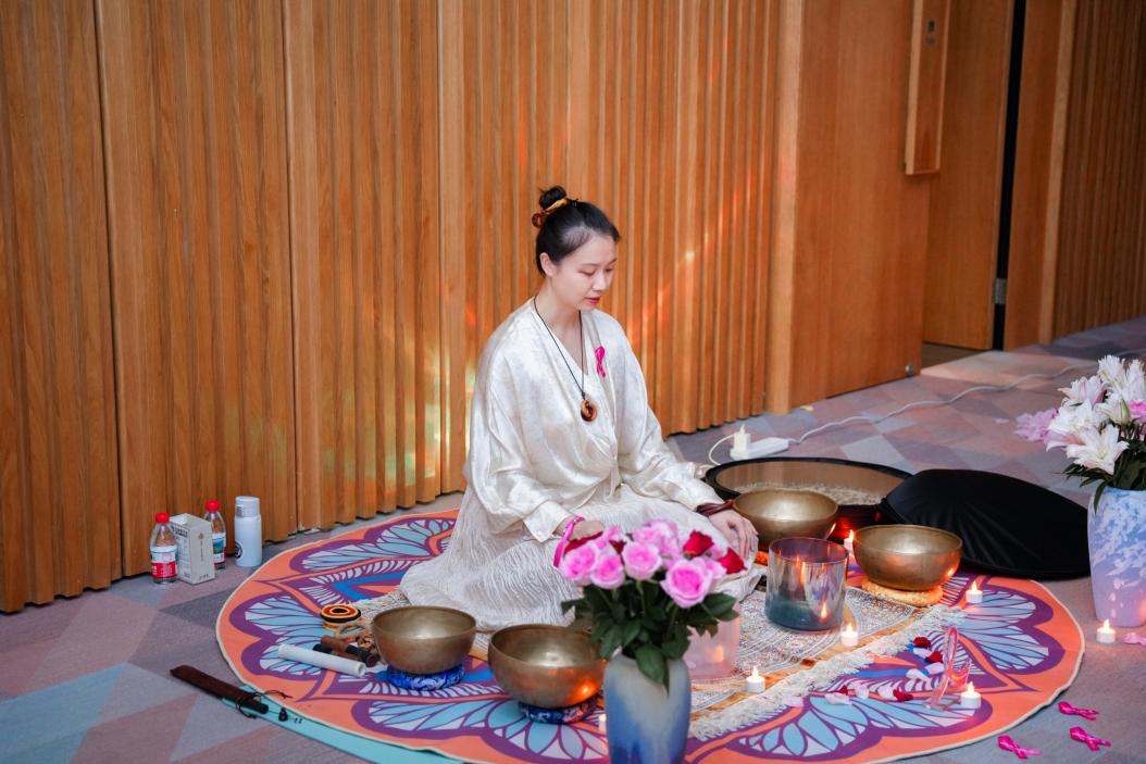 图为治疗师童镝霏带来的“催眠与颂钵的身心舒缓之旅”疗愈体验