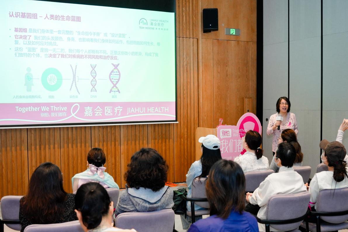 嘉会国际肿瘤中心肿瘤内科主任宣琳丽以30余年的中美临床经验,为患者解读基因组学如何改变乳腺癌防治格局。她指出,约90%的乳腺癌并非由单一遗传基因突变引起,而是遗传因素和后天环境共同作用的结果。“理解风险,密切预防,一旦发现尽早治疗”——这是基因组学带给我们的启示。